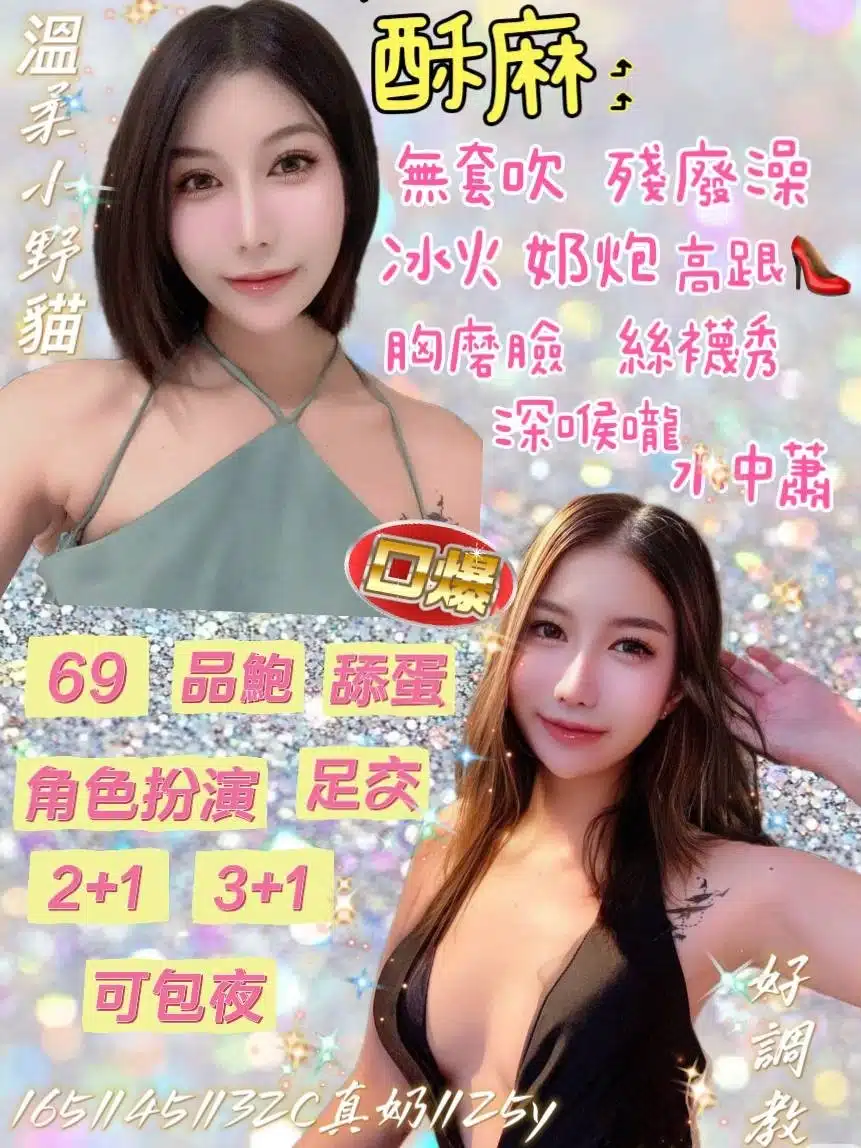 奶砲,按摩,69,共浴,無套吹,口爆,足交,品鮑,舔蛋,冰火,浴中蕭,深喉嚨,跳跳糖吹簫,變裝,絲襪,快餐,2S,NS,包夜