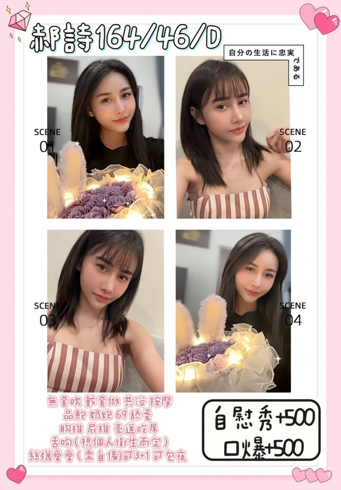 無套吹/戴套做/浪漫共浴/愛撫/按摩/品鮑/69/奶炮/胸推/屁推/豪邁吃屌/小親親(視個人衛生而定/ 絲襪愛愛(請自備